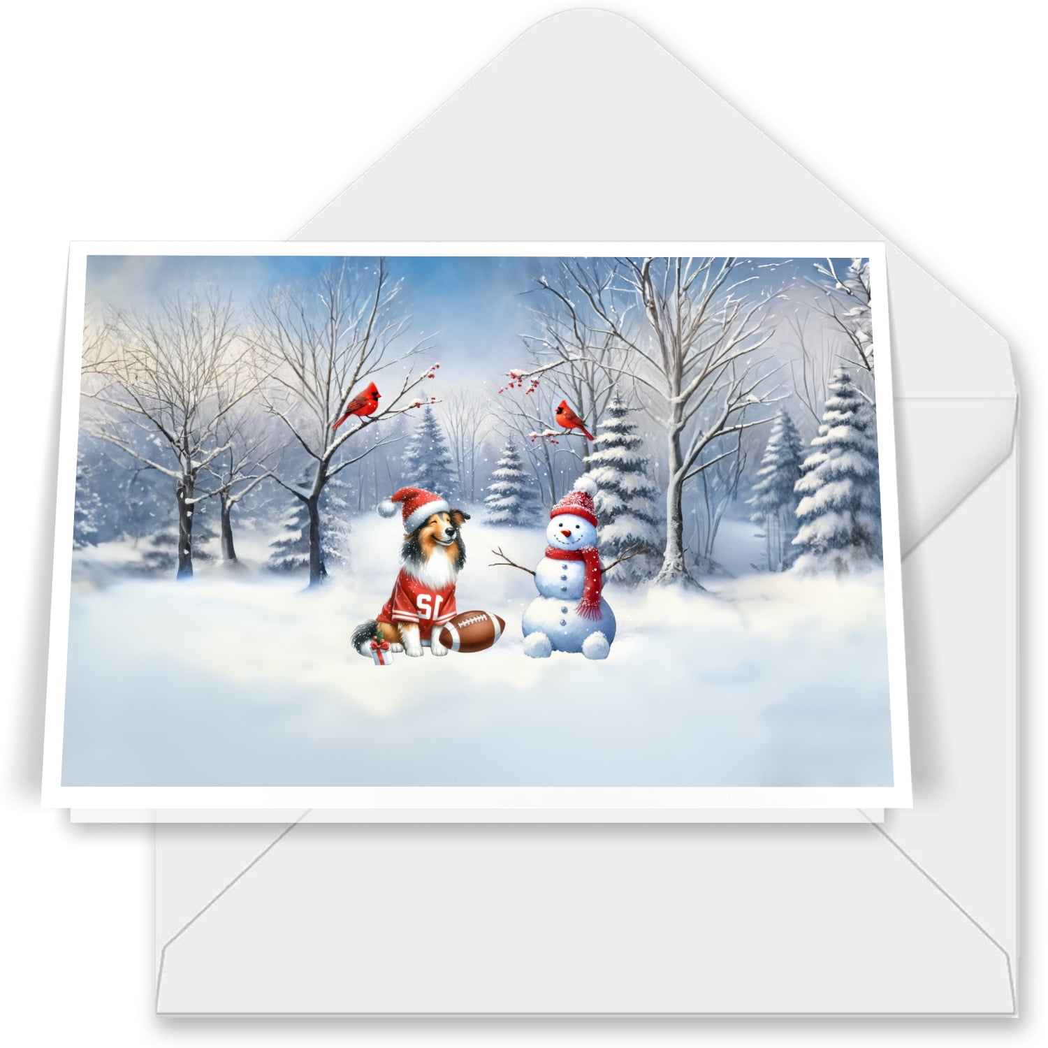 Hello Winter Collie Football Snowman Welcome Snowy Morning 7x5in Folded