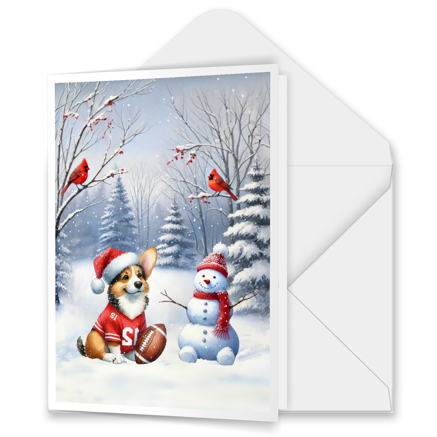 Hello Winter Corgi Football Snowman Welcome Snowy Morning 5x7in Folded