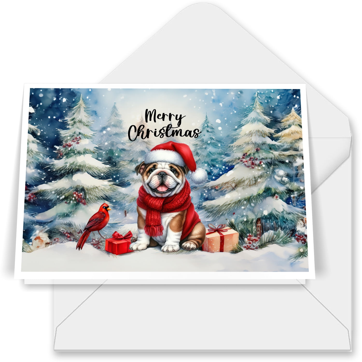 Merry Christmas Bulldog Enjoys Woofmas Winter Xmas Holiday 7x5in Folded