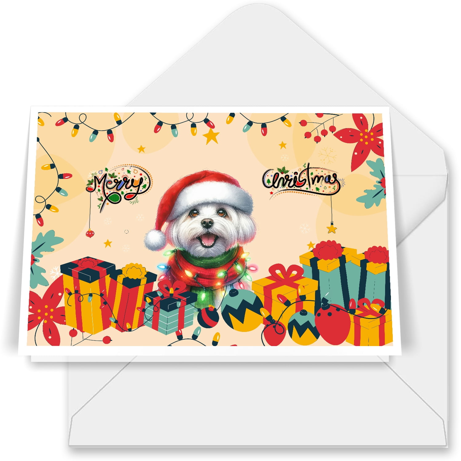 Merry Christmas Santa Maltese Scarf Twinkling Lights Xmas Holiday 7x5in