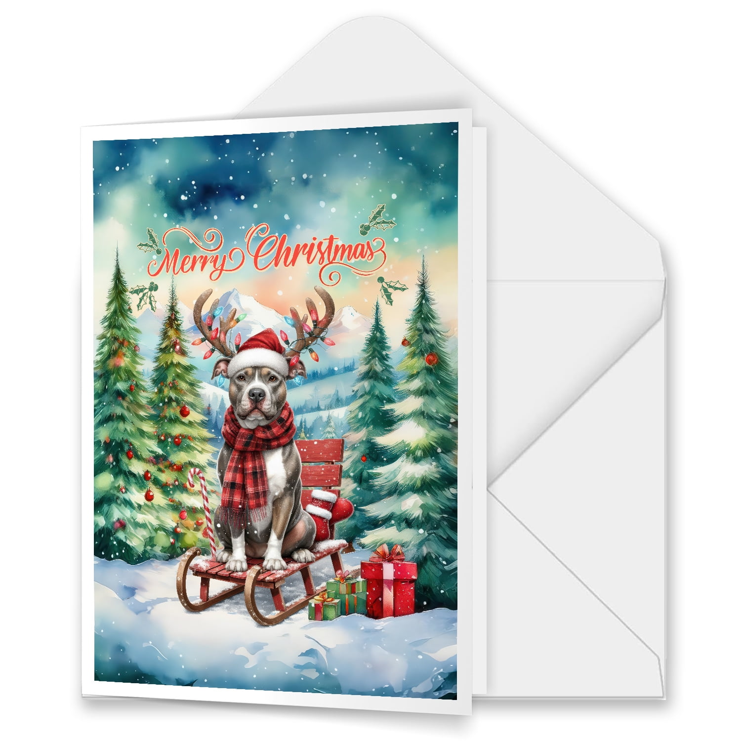 Merry Christmas Santa Reindeer Antlers Pitbull Sleigh Xmas Winter