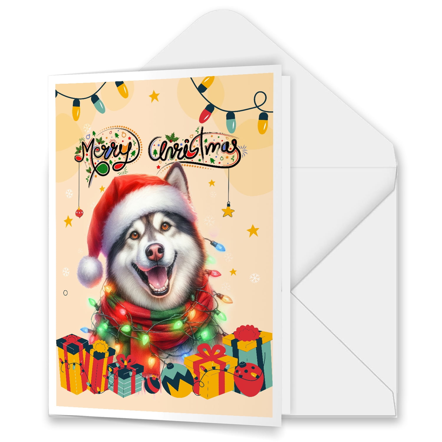Merry Christmas Santa Siberian Husky Scarf Twinkling Lights Xmas