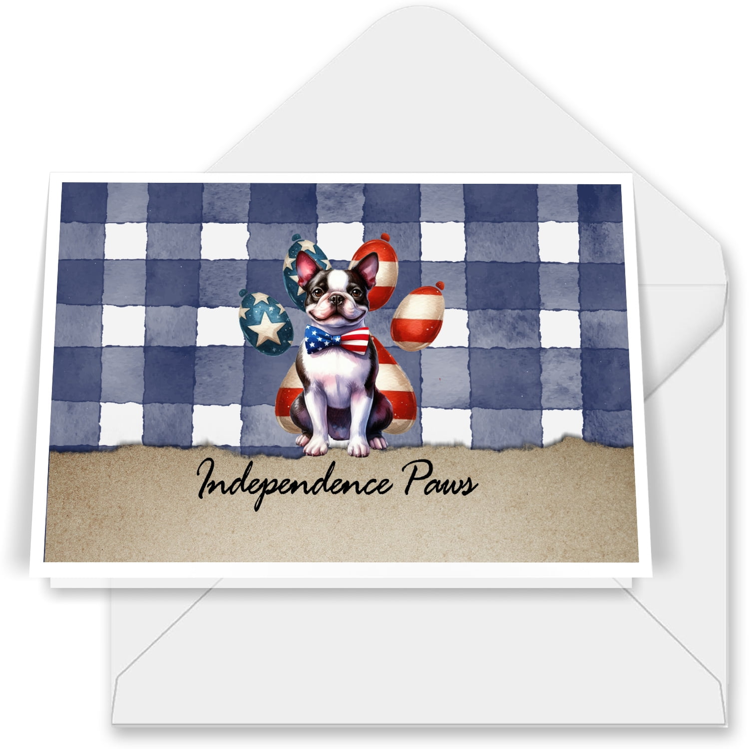 Patriotic Boston Terrier 4th of July Independence Paws 7x5in Folded