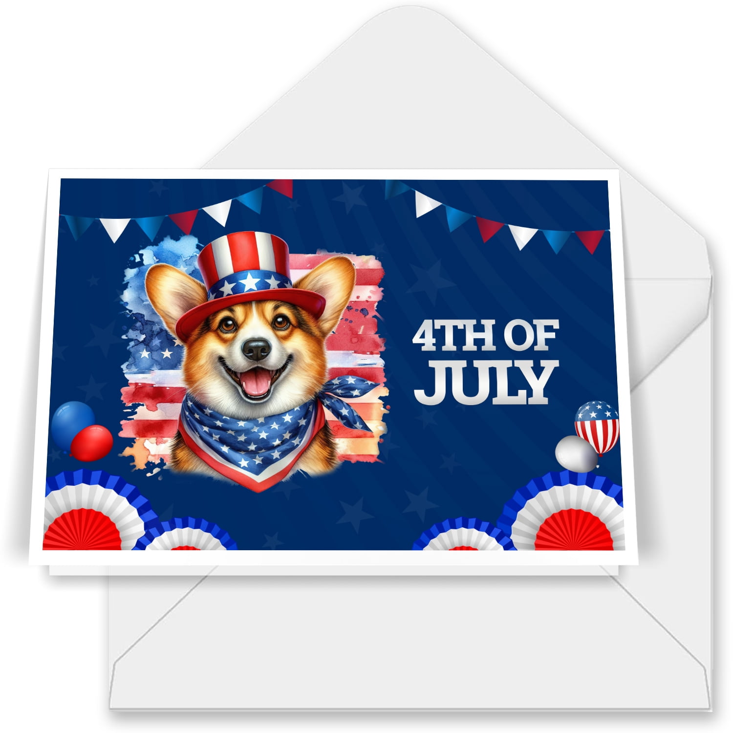 Patriotic Corgi Celebrates 4th of July 7x5in Folded Greeting Card Welsh