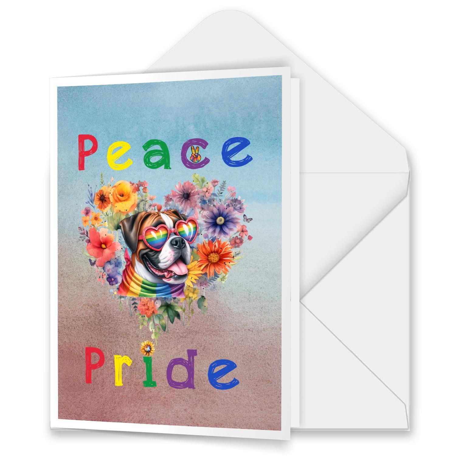 Peace Love Pride Boxer with Rainbow Sunglasses LGBT LGBTQ 5x7in Folded