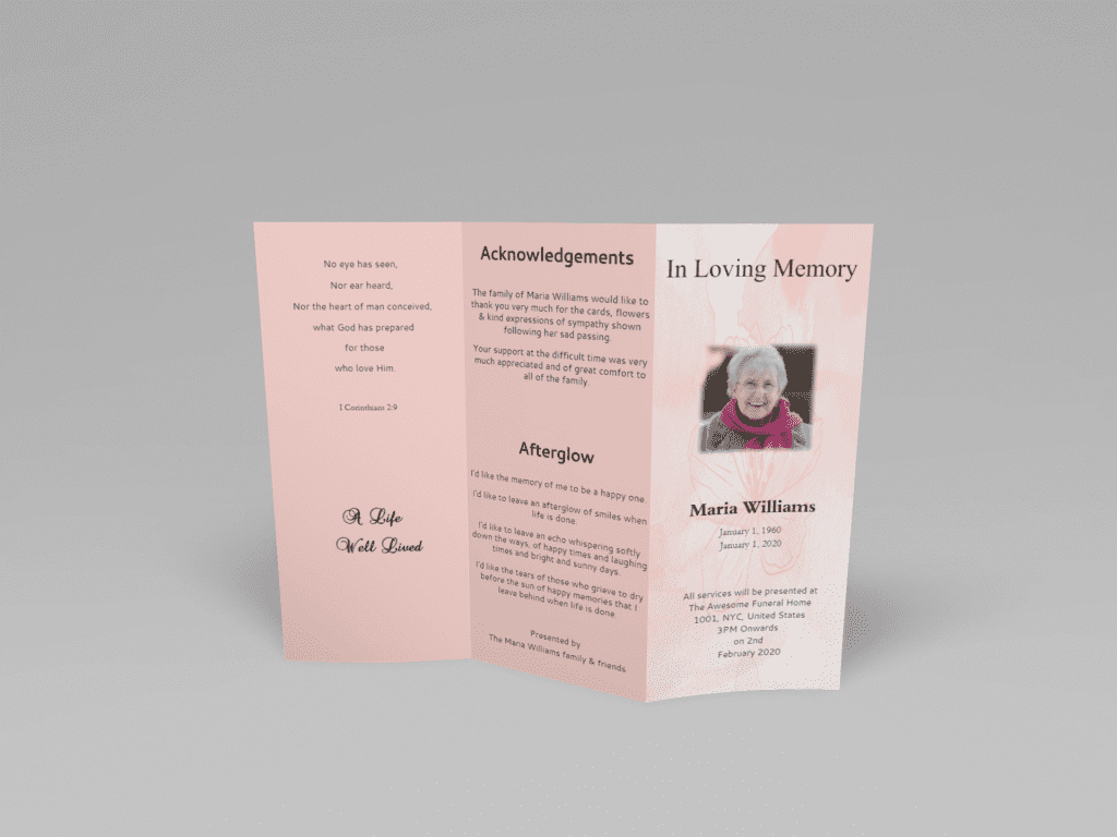 Bi Folded Funeral Program Template With Pink Floral Cover