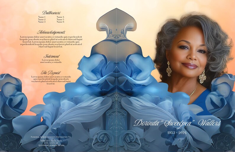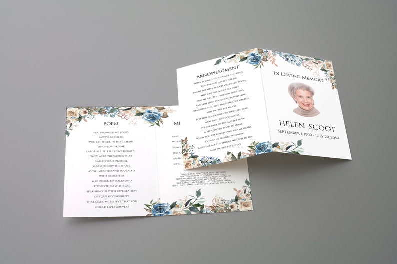 8 5x11 in Folded Funeral Program Template Blue Obituary Easy to Edit