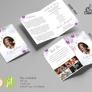 Purple Floral Butterfly Funeral Obituary Template Folded Funeral