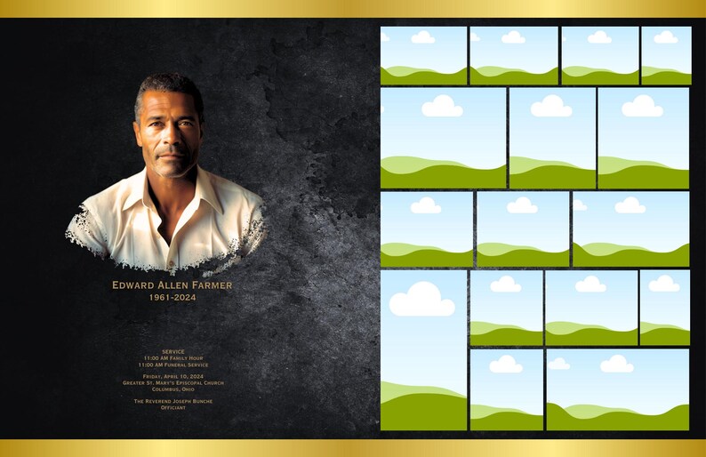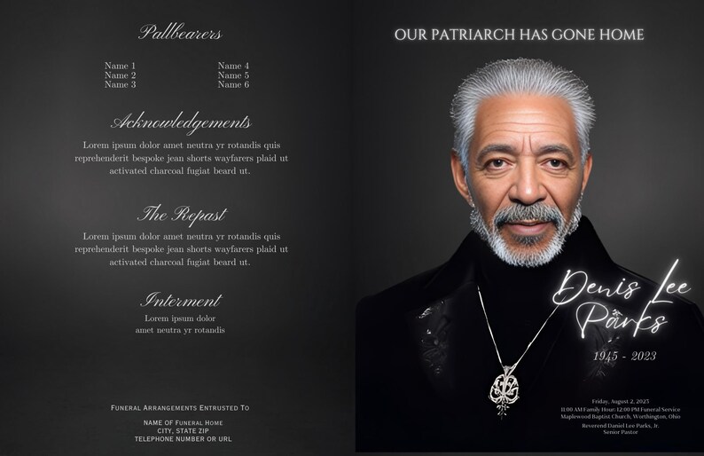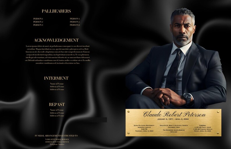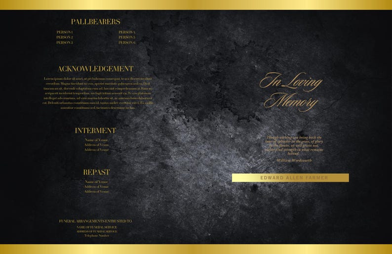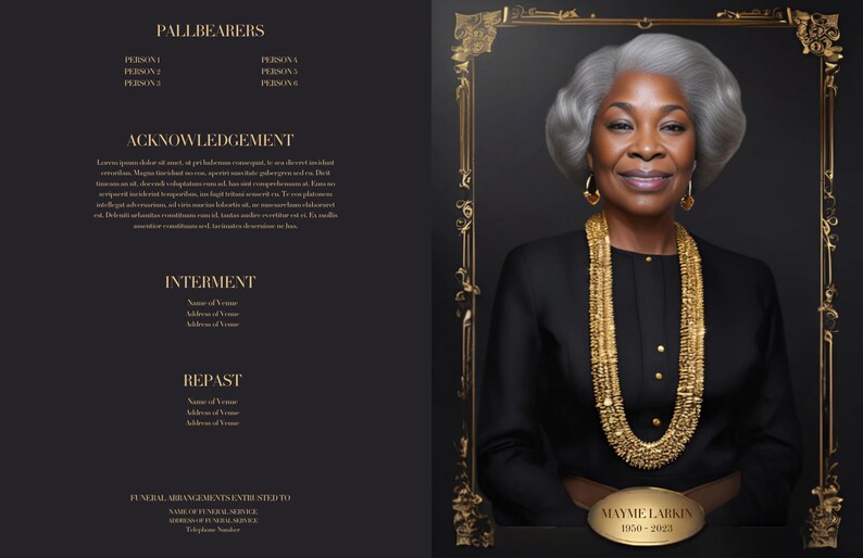 8 5x11 in Folded Funeral Program Template Black Gold Obituary Easy