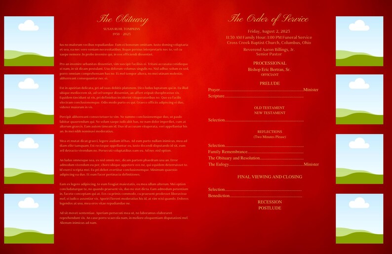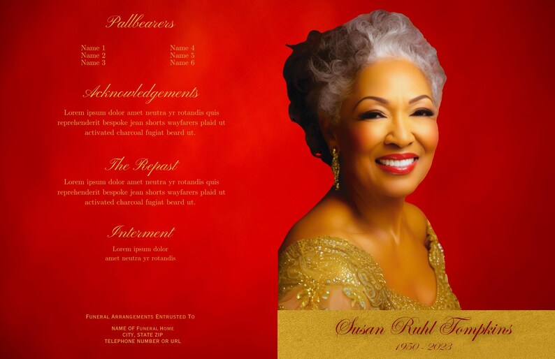 8 5x11 in Folded Funeral Program Template Red Gold Obituary Easy