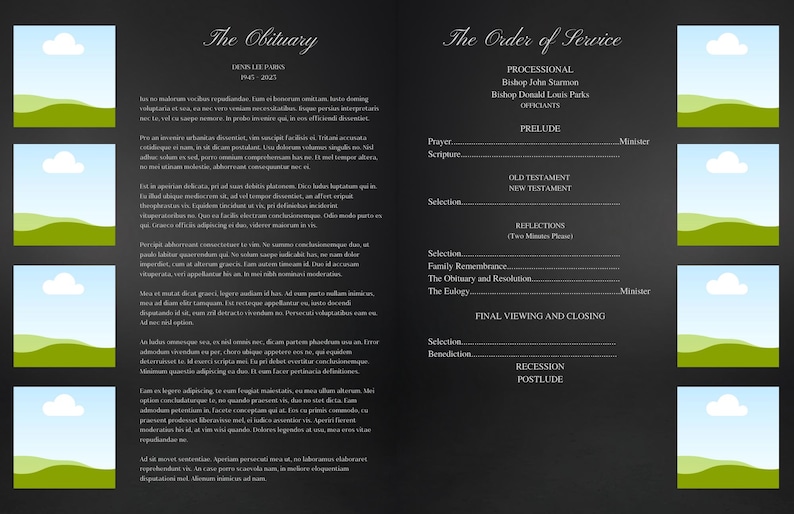 8 5x11 in Folded Funeral Program Template Black White Obituary