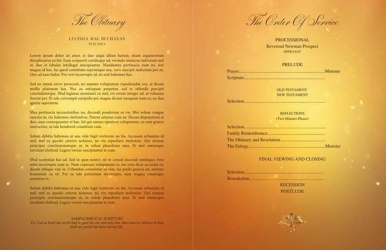 8 5x11 in Folded Funeral Program Template Orange Gold Obituary Easy
