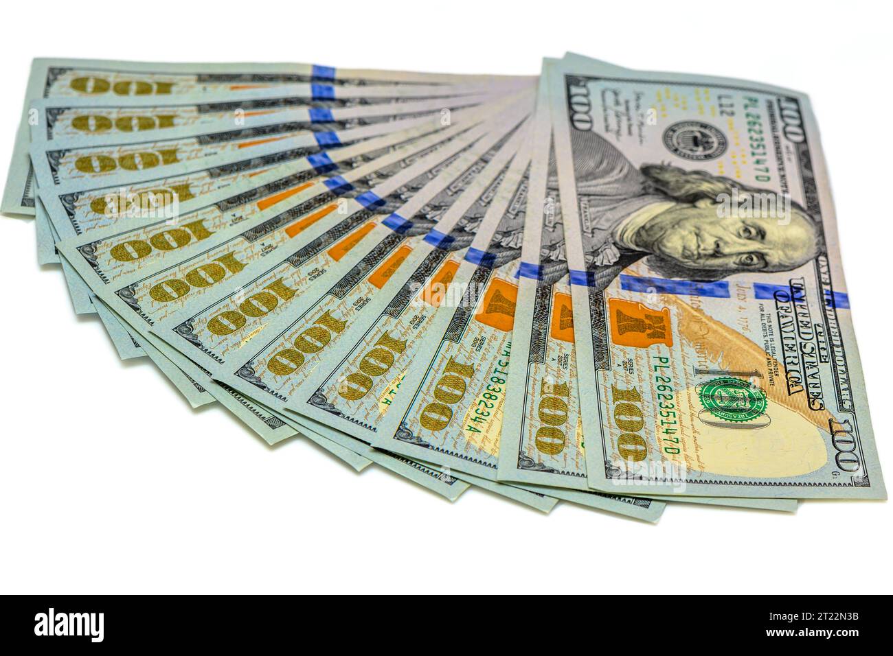 New U S Hundred dollar Bills Folded Like a Fan Put into Circulation