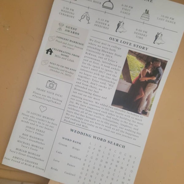 Wedding Newspaper Program Template Printable Infographic Ceremony