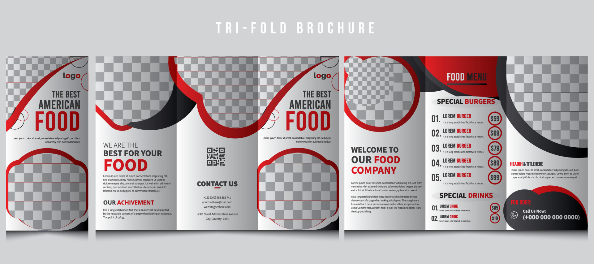 Tri fold restaurant food menu pamphlet brochure design template Fast