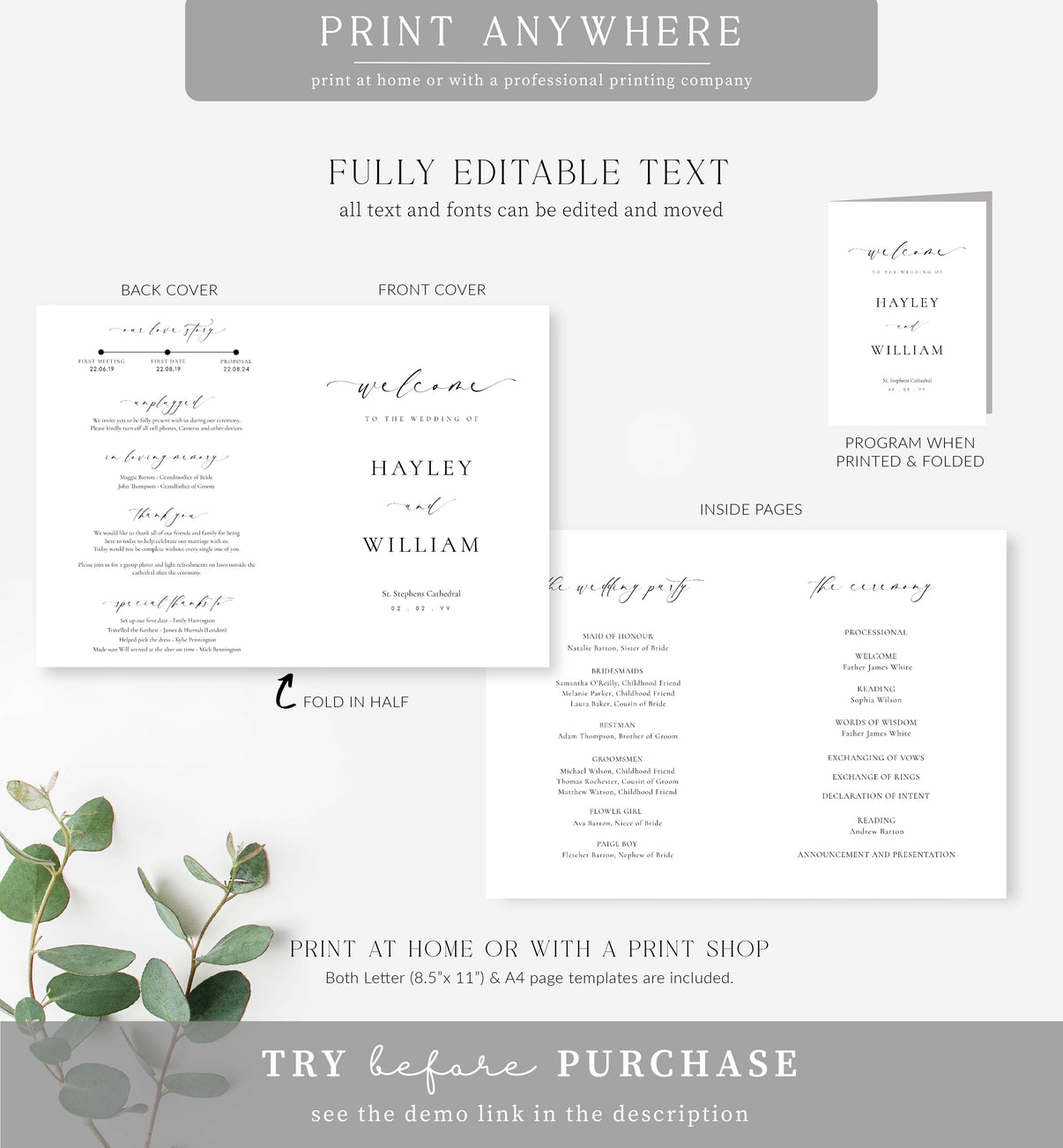Bi fold Program Template Printable and Editable Folded Etsy UK