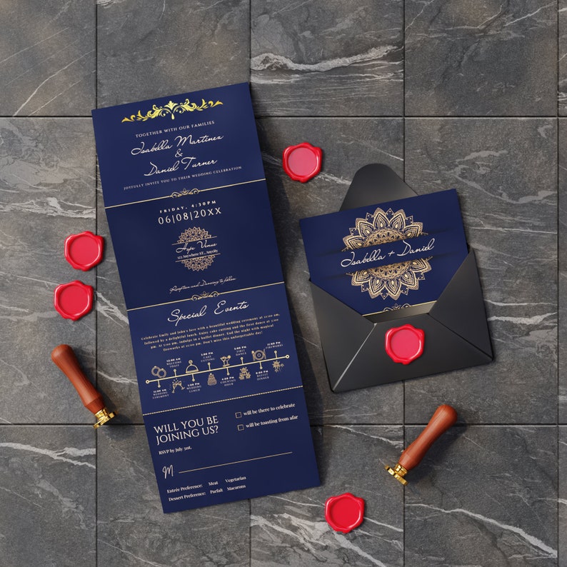 Luxe Folded Wedding Invitation Template Concertina Wedding Invite