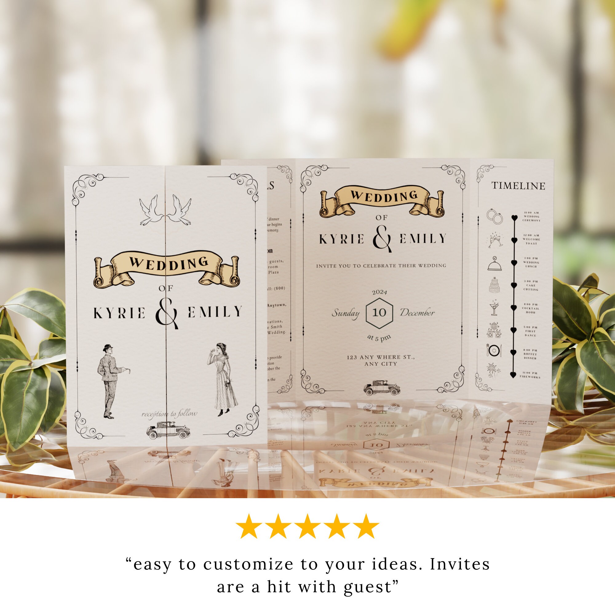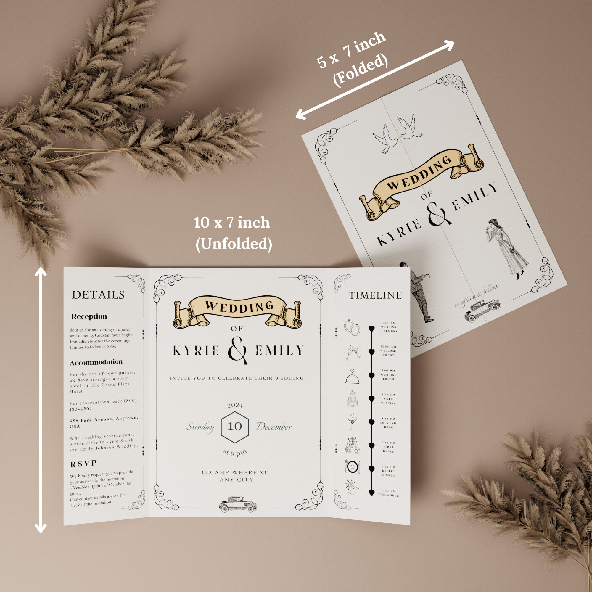 Vintage inspired Folded Wedding Invitation Template for a Charming