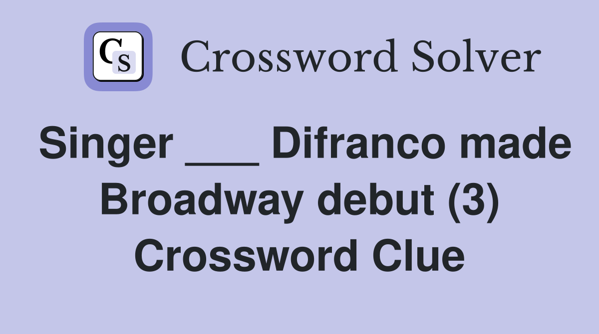 Singer Difranco made Broadway debut (3) Crossword Clue Answers