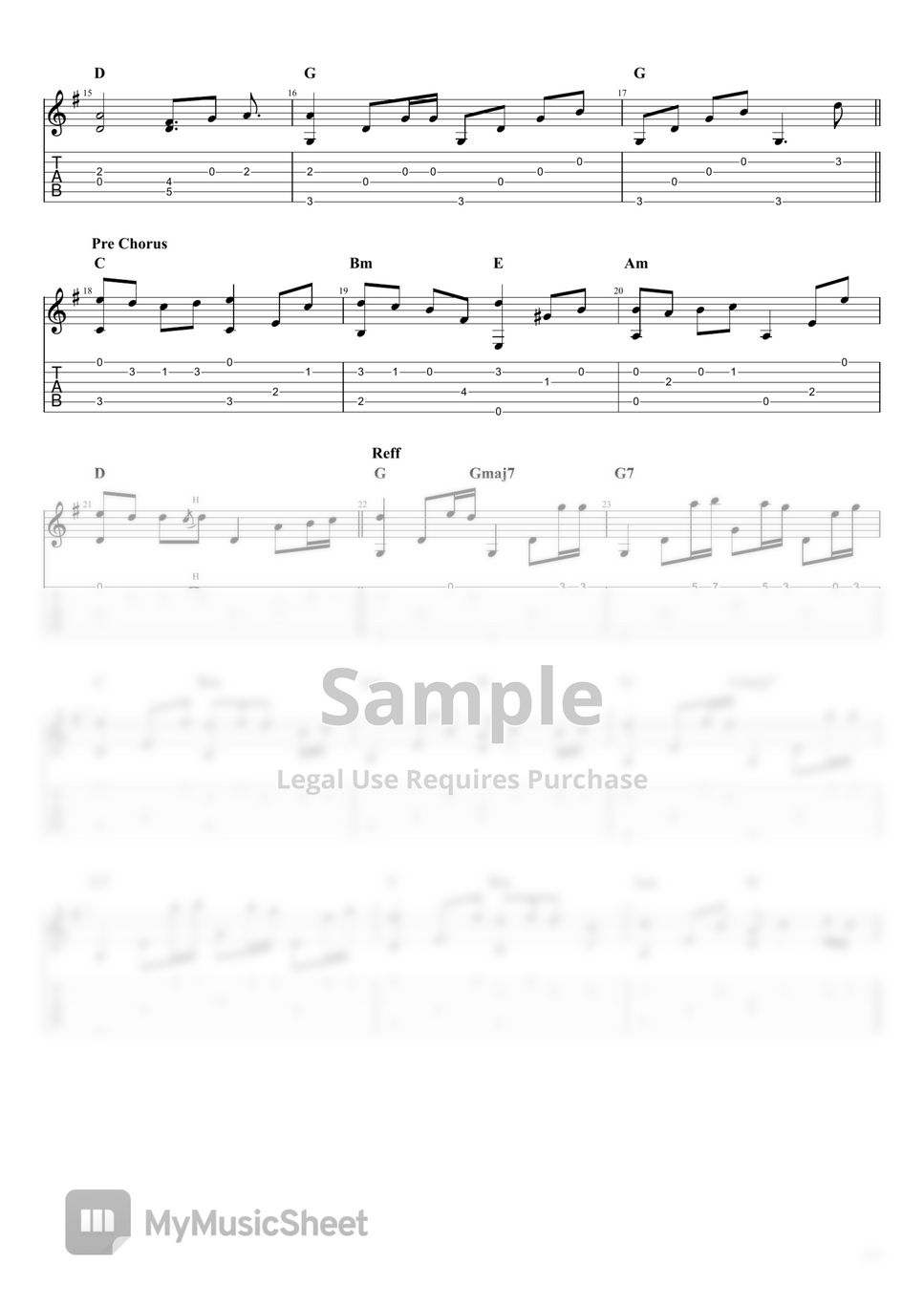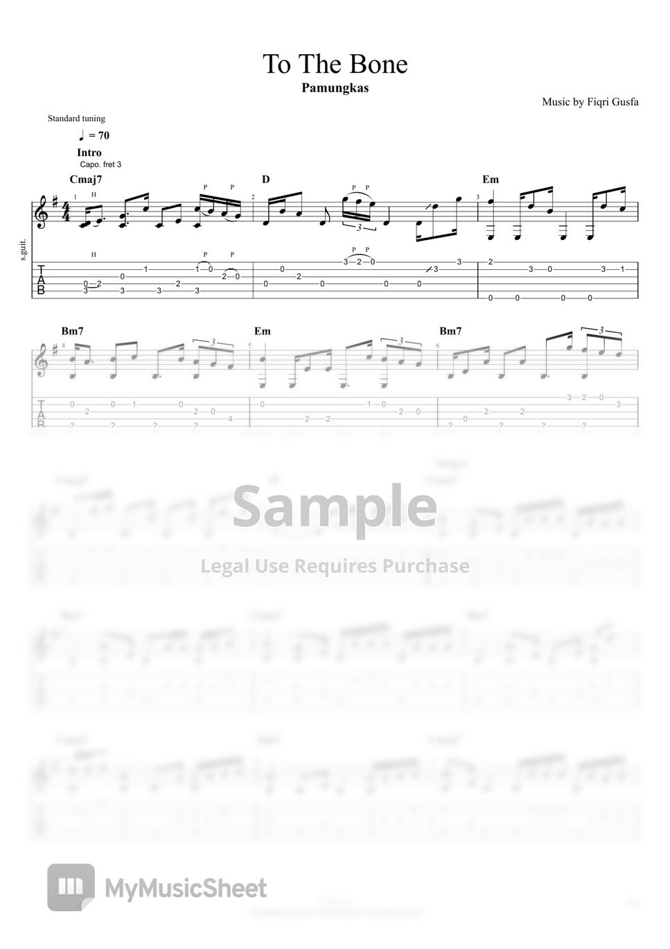 Pamungkas To The Bone 曲谱 单线谱 by Fiqri Gusfa
