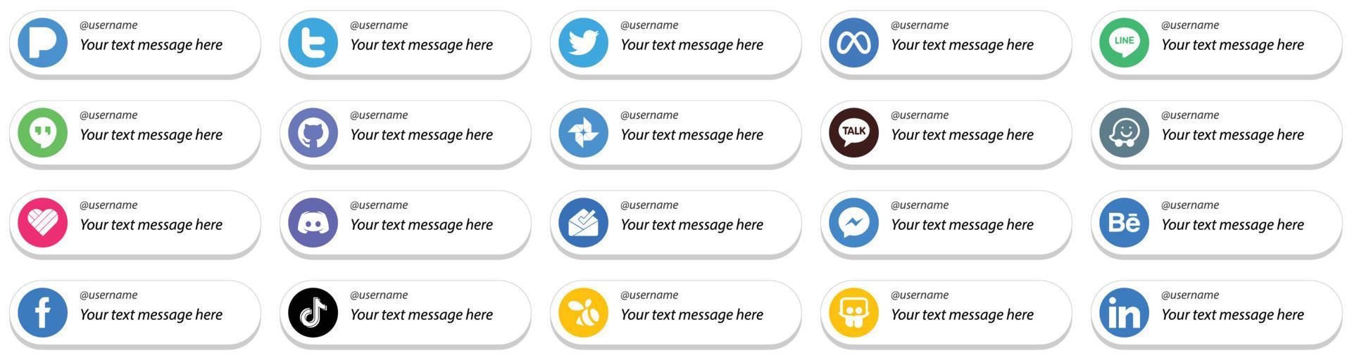 20 Card Style Follow Me Social Media Platform Icons with Custom Message