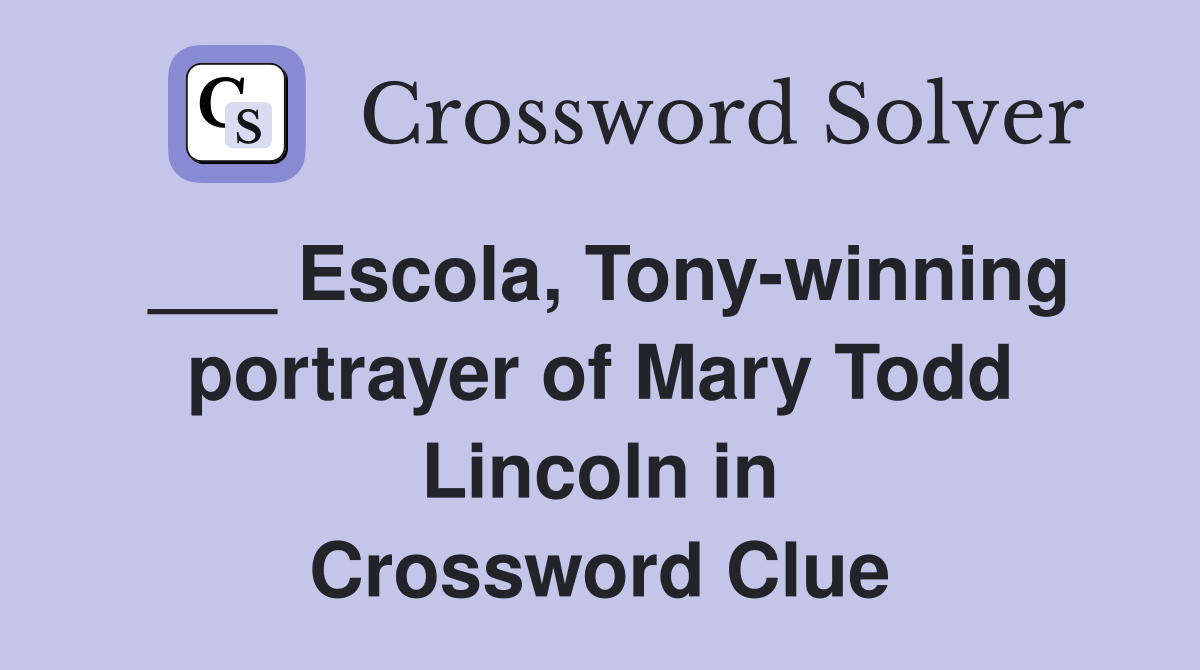 Escola Tony winning portrayer of Mary Todd Lincoln in Oh Mary