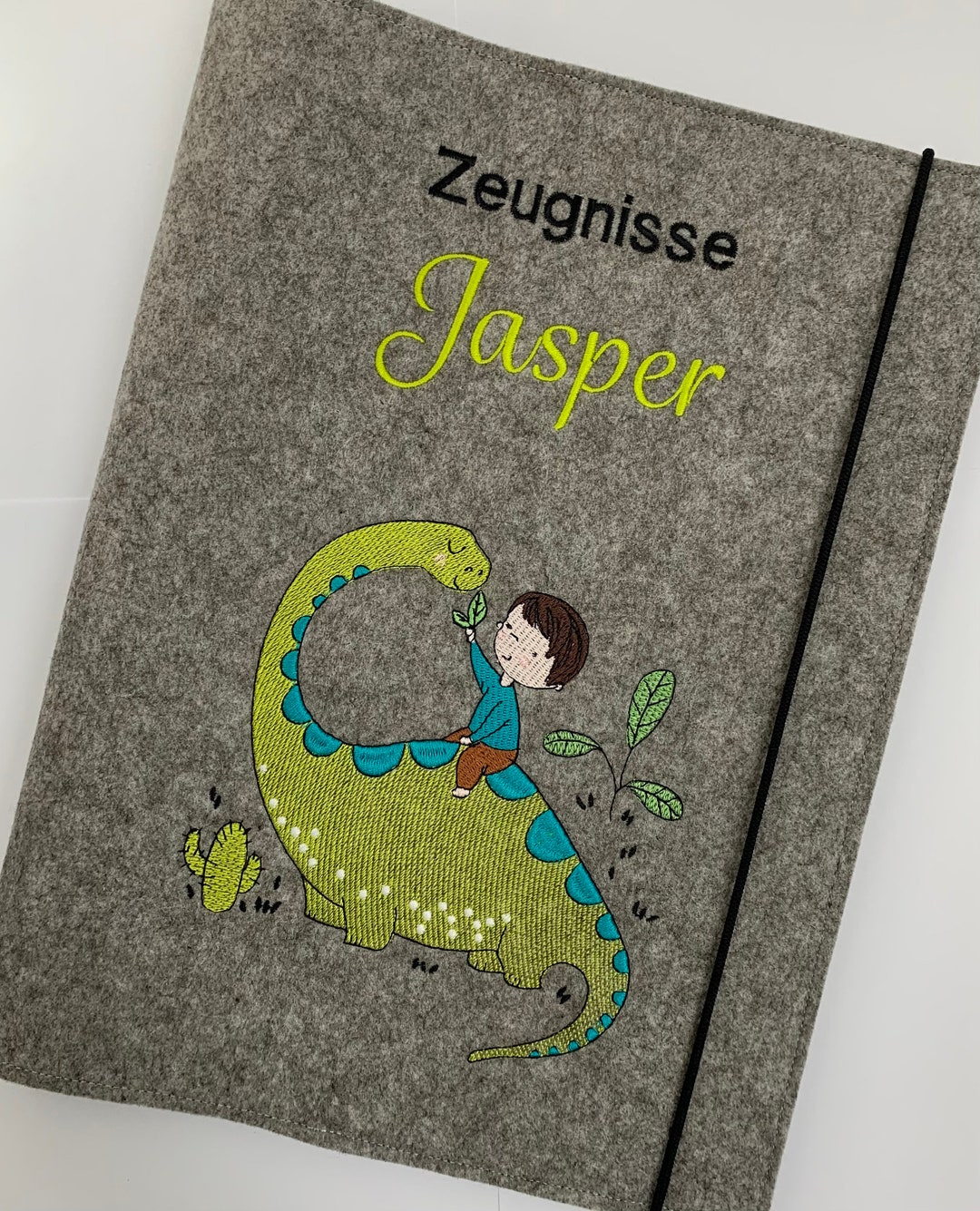 Personalized Certificate Folder Made of Felt / Dino / Long Neck / With
