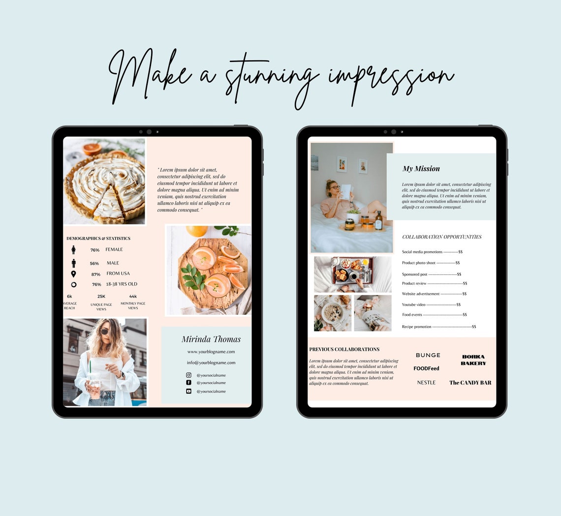Food Blogger Media Kit Template Canva Template Influencer Etsy