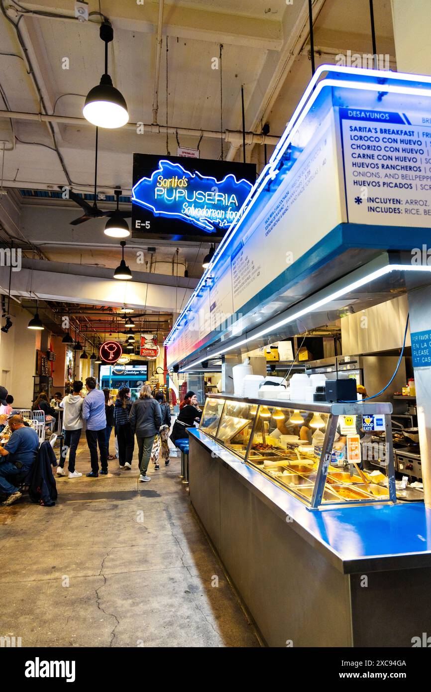 People dining at Sarita #39 s Pupuseria Grand Central Market food court