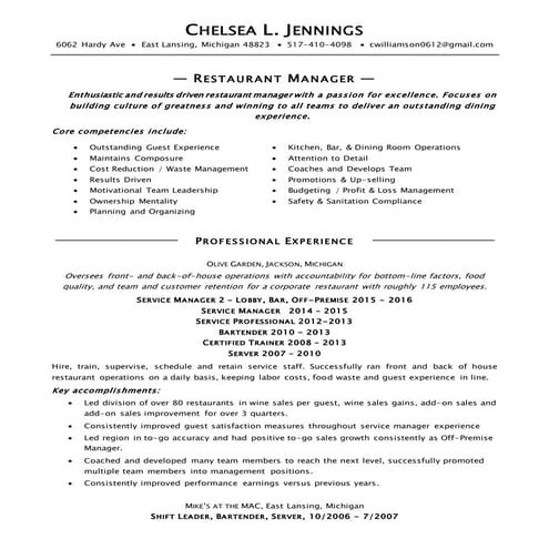 Restaurant Manager Resume Samples 3 Examples VisualCV