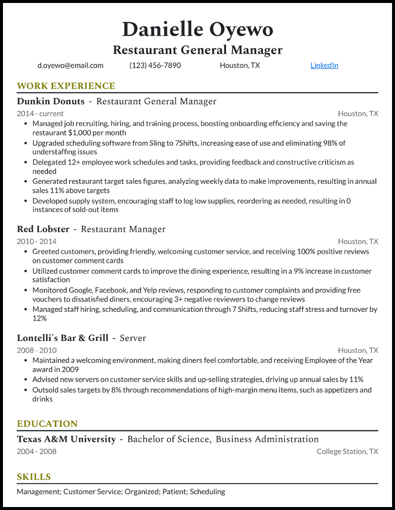 9 Restaurant Resume Examples That Worked in 2025