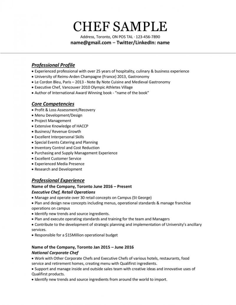 Chef Resume Template Free Of Chef Resumes that Will Impress Your Future