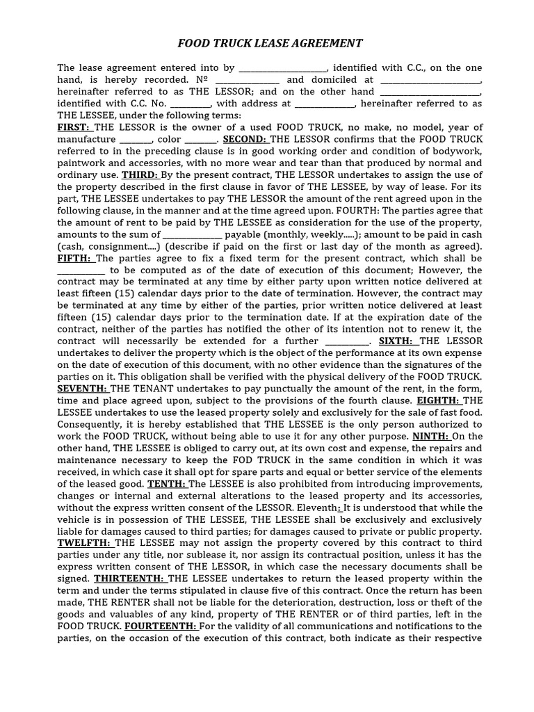 Here are some of the images for Food Truck Lease Agreement Template Free that we found in our website database.