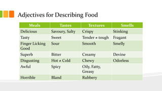 Food Adjectives Interesting Words to Describe Food • 7ESL