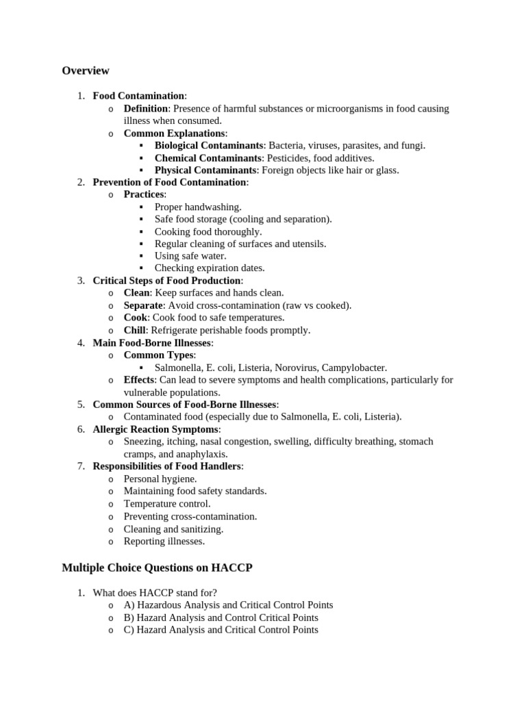 MCQs with Answers HACCP PDF Food Safety Foodborne Illness