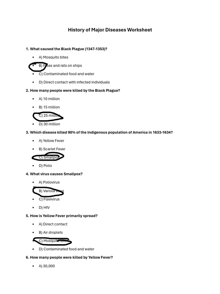 History of Major Diseases Worksheet PDF Yellow Fever Foodborne