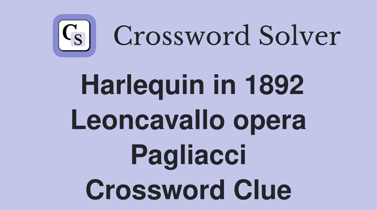 Harlequin in 1892 Leoncavallo opera Pagliacci Crossword Clue Answers