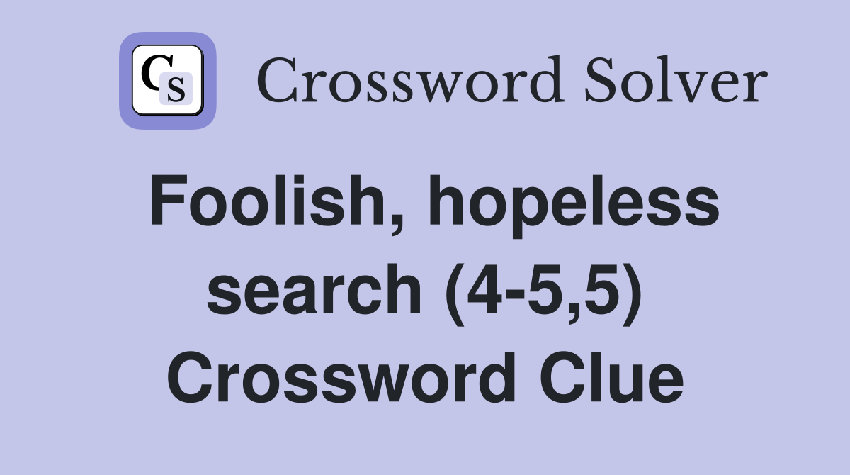 Foolish hopeless search (4 5 5) Crossword Clue Answers Crossword