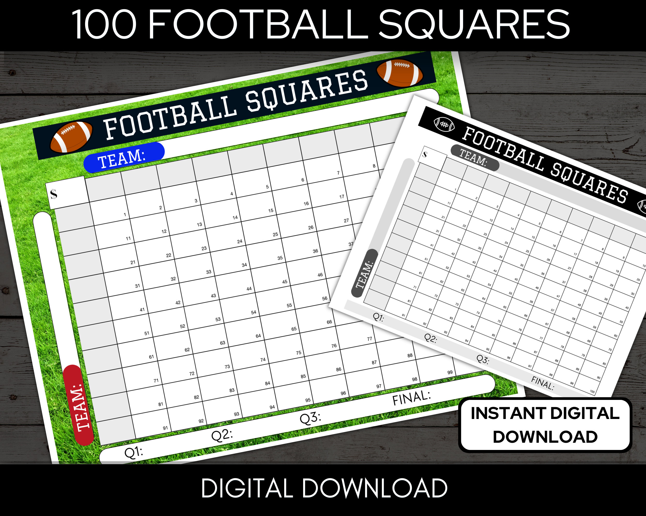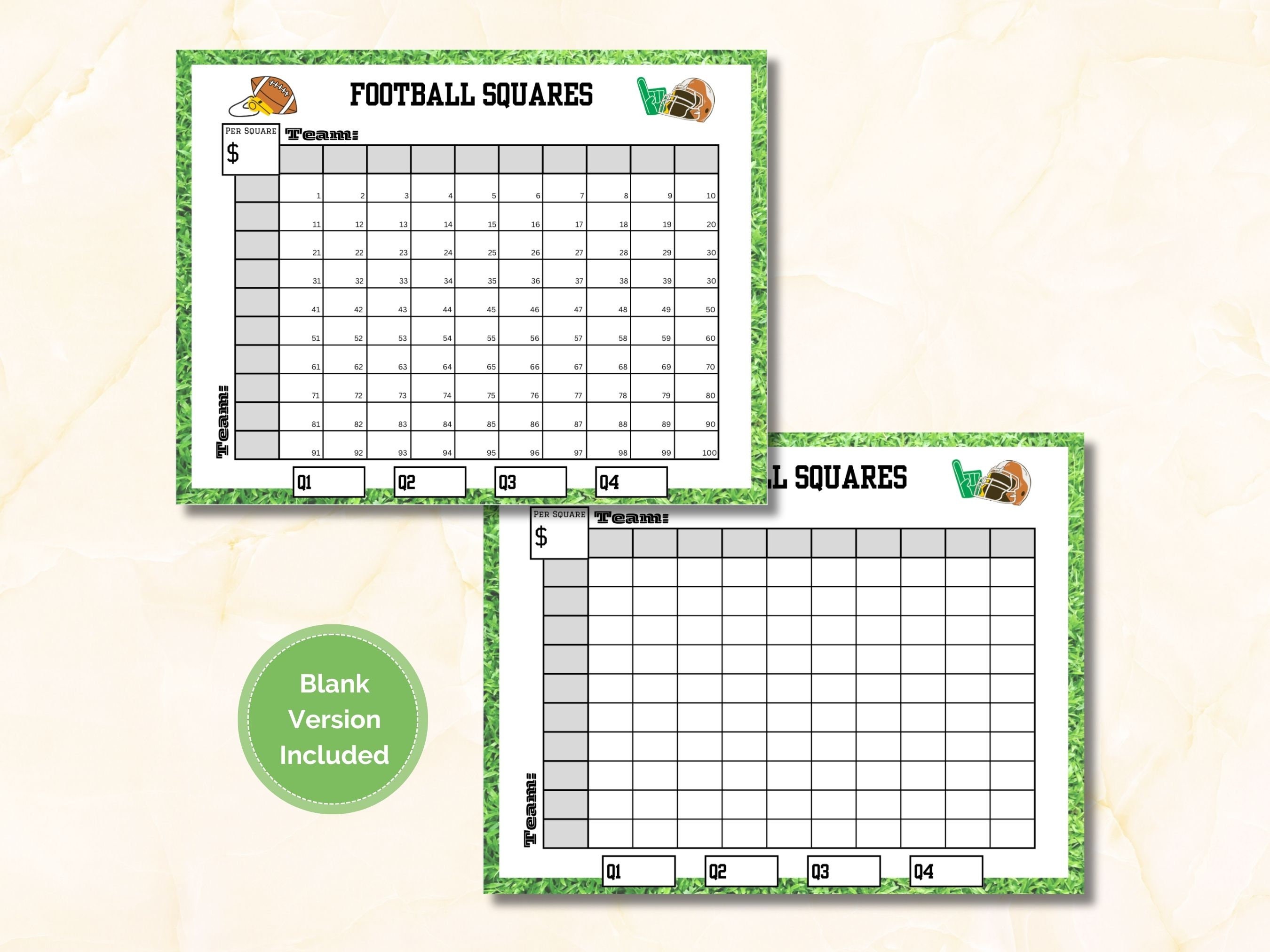 Printable Football Squares 100 Square Pool Template (PDF) Etsy