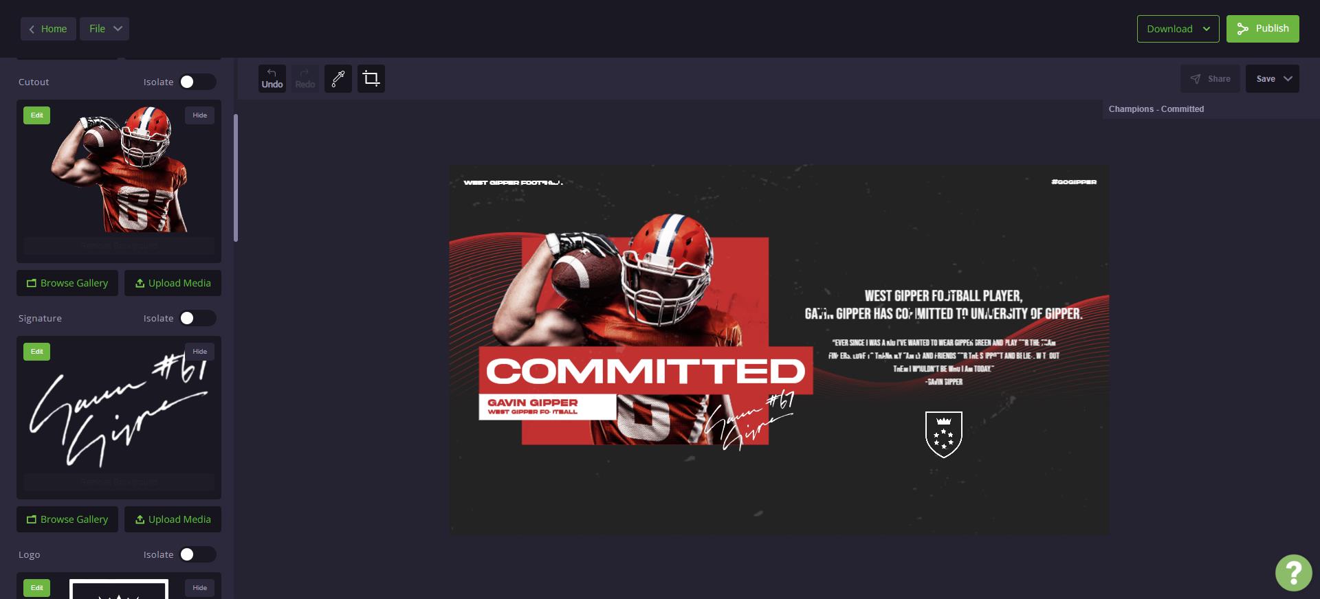 Create Graphics using Professional Football Templates Gipper