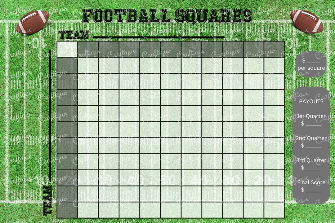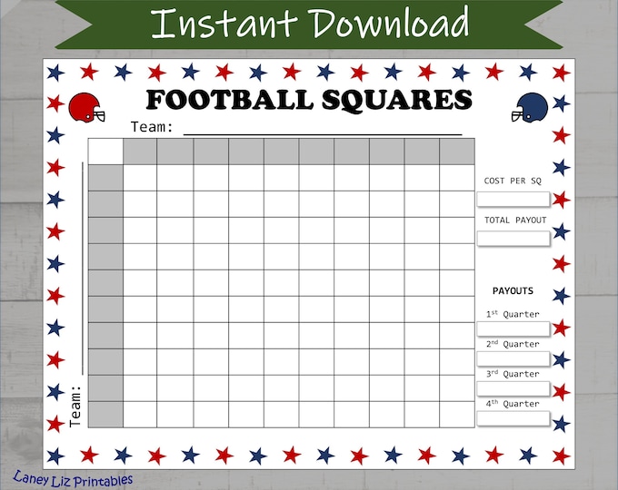 Football Squares Game Printable Football Fundraiser Football Etsy