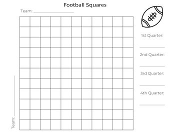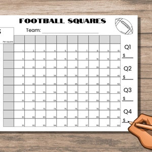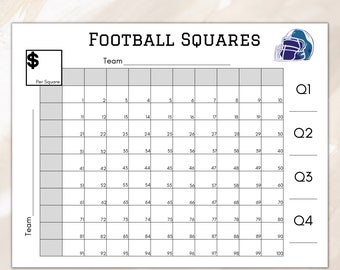 Football Squares Template 100 Squares Numbered Football Squares Etsy