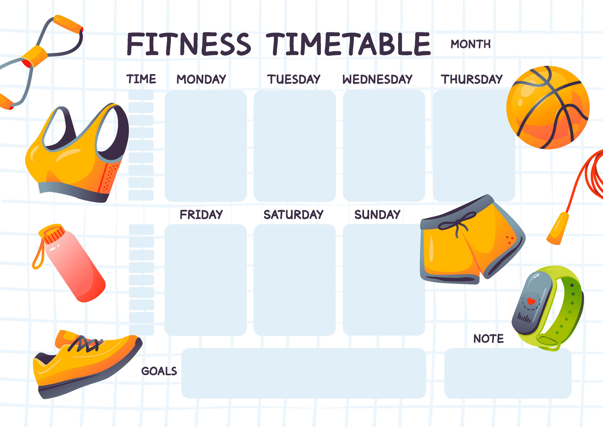 Fitness and sports weekly planner Fitness timetable Weekly schedule