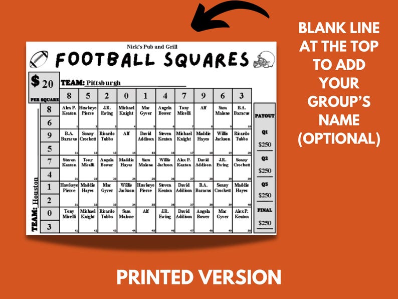 50 Football Squares Printable Editable Football Square Fundraiser