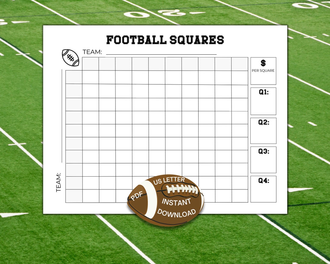 Printable FOOTBALL Squares Football Boxes Game 8 X 10 Inch 100 Squares