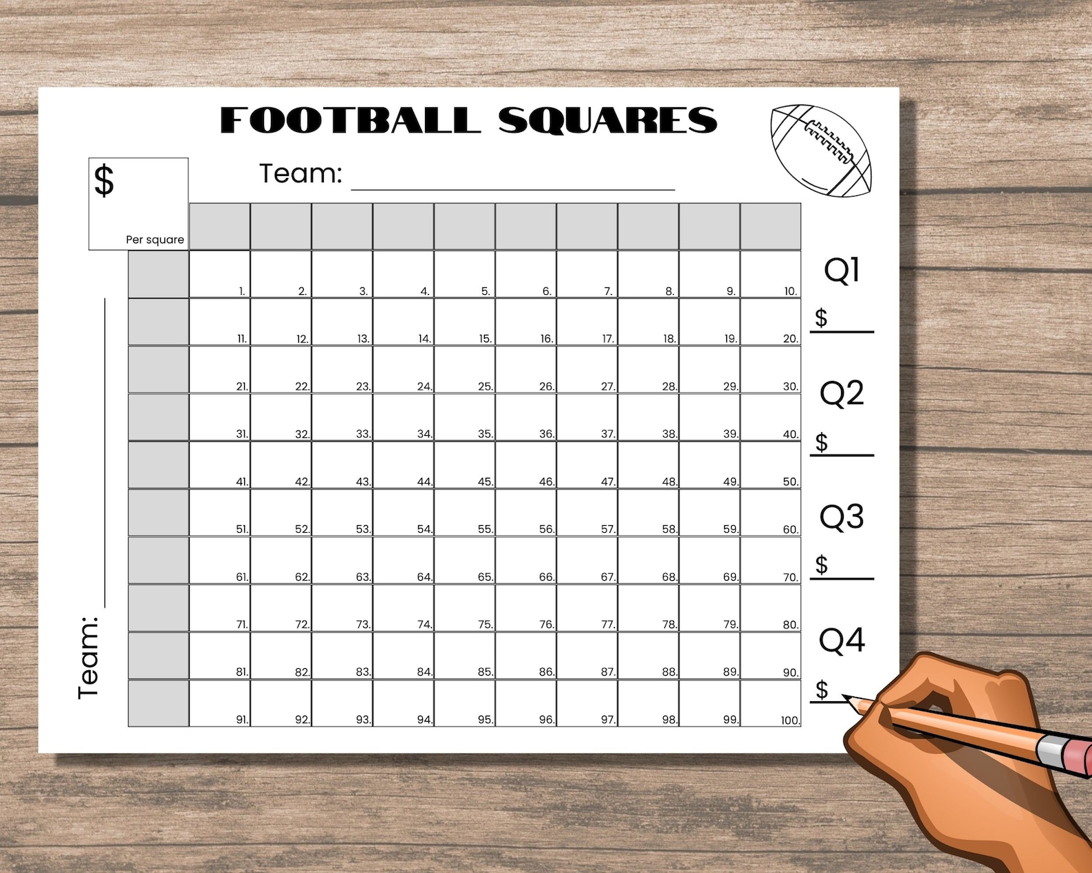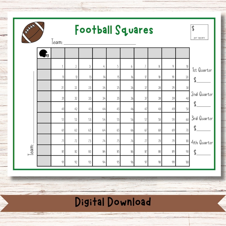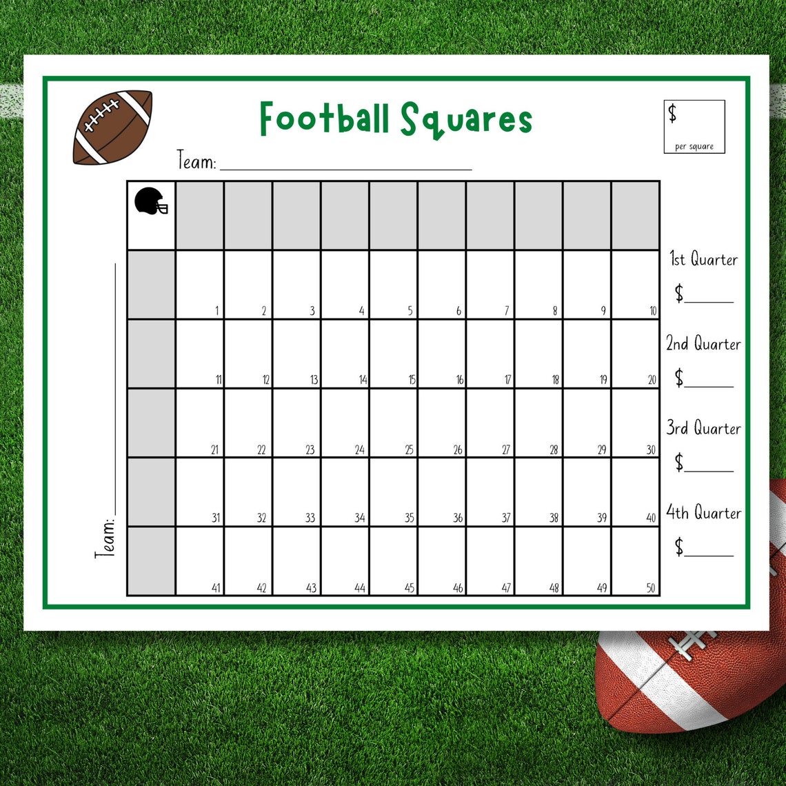 Football Squares Game Printable Football Fundraiser Football Etsy