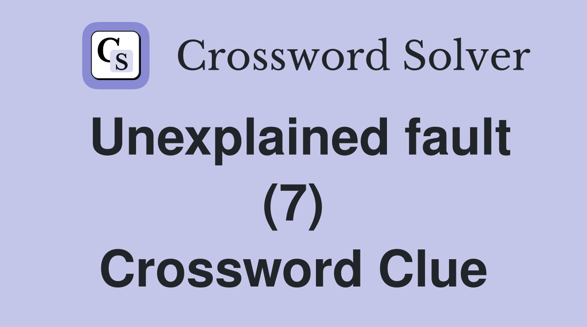 Unexplained fault (7) Crossword Clue Answers Crossword Solver