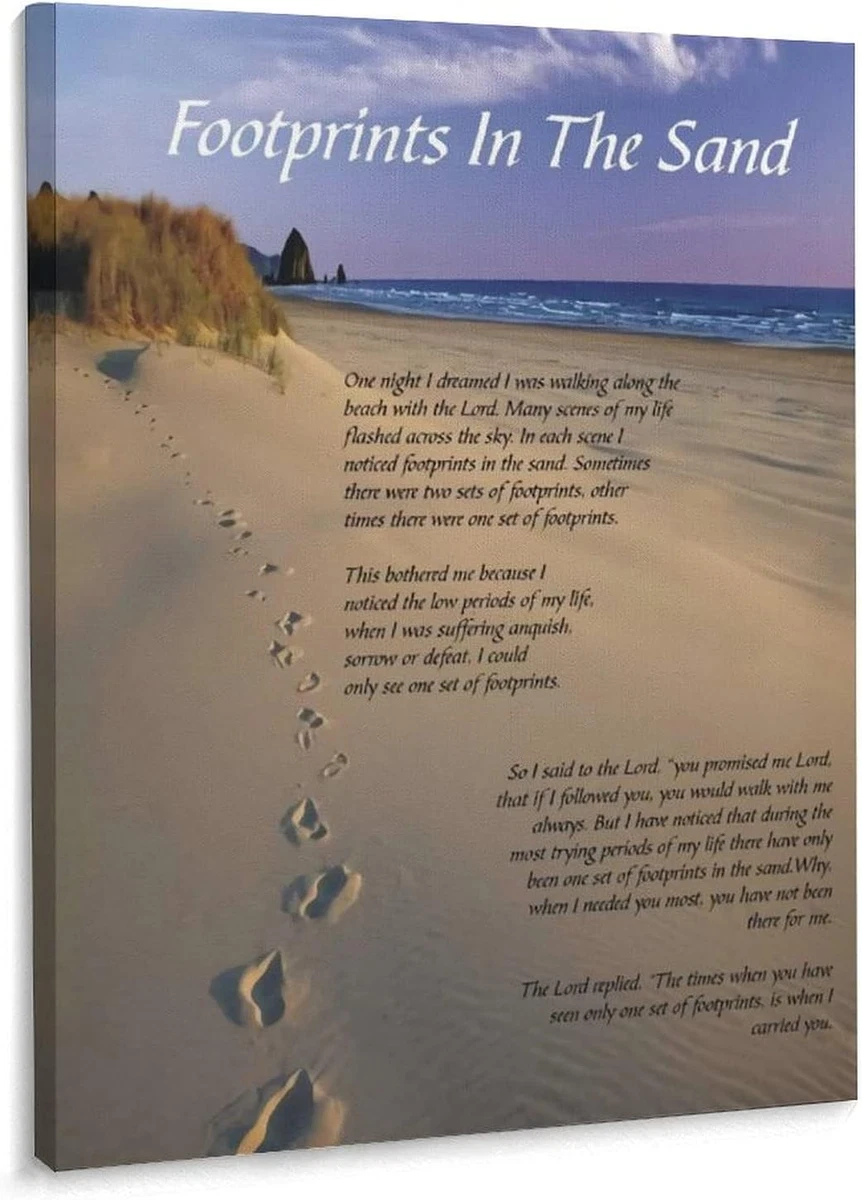 Footsteps in the sand poem poster inspirational quotes picture canvas