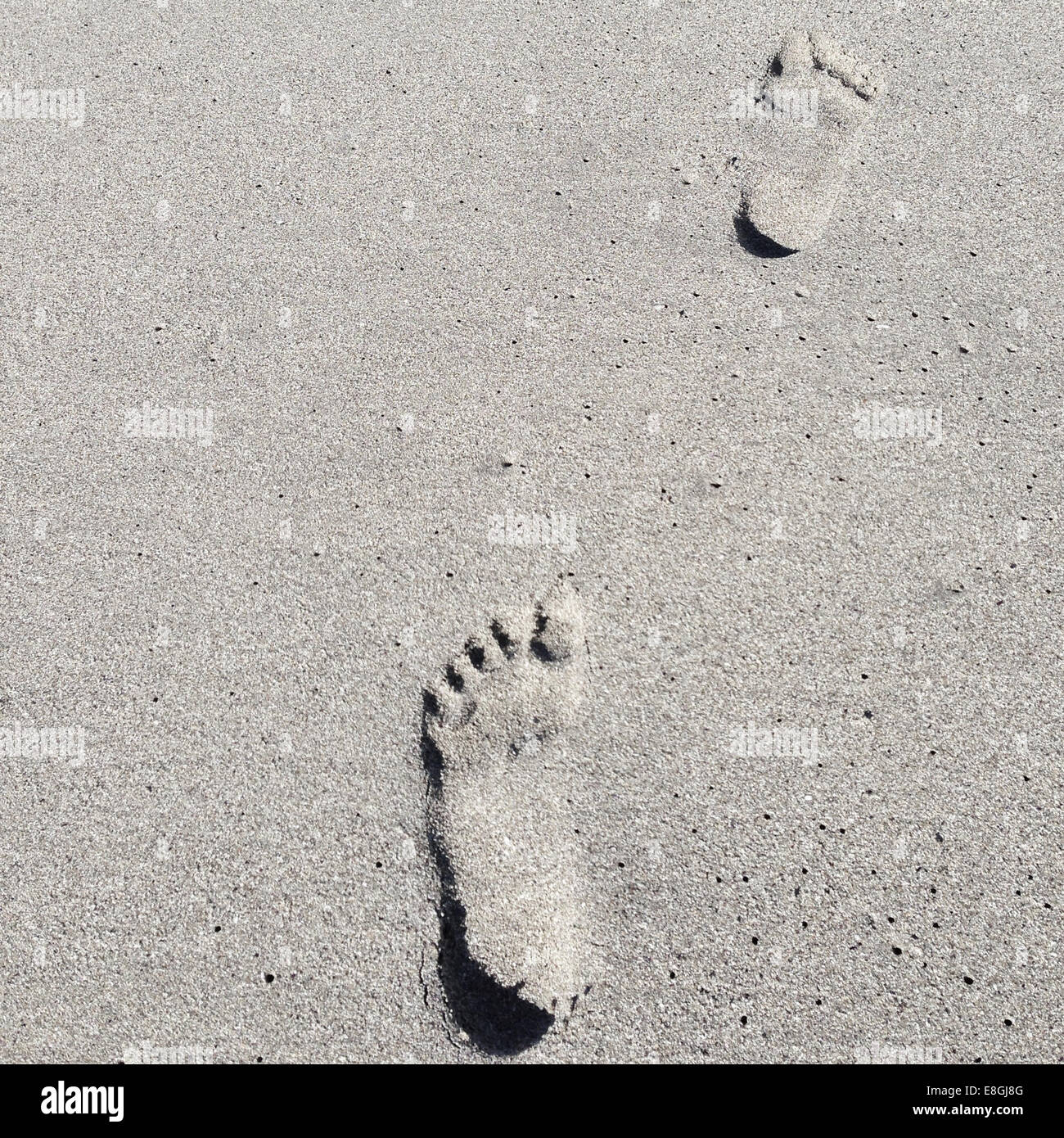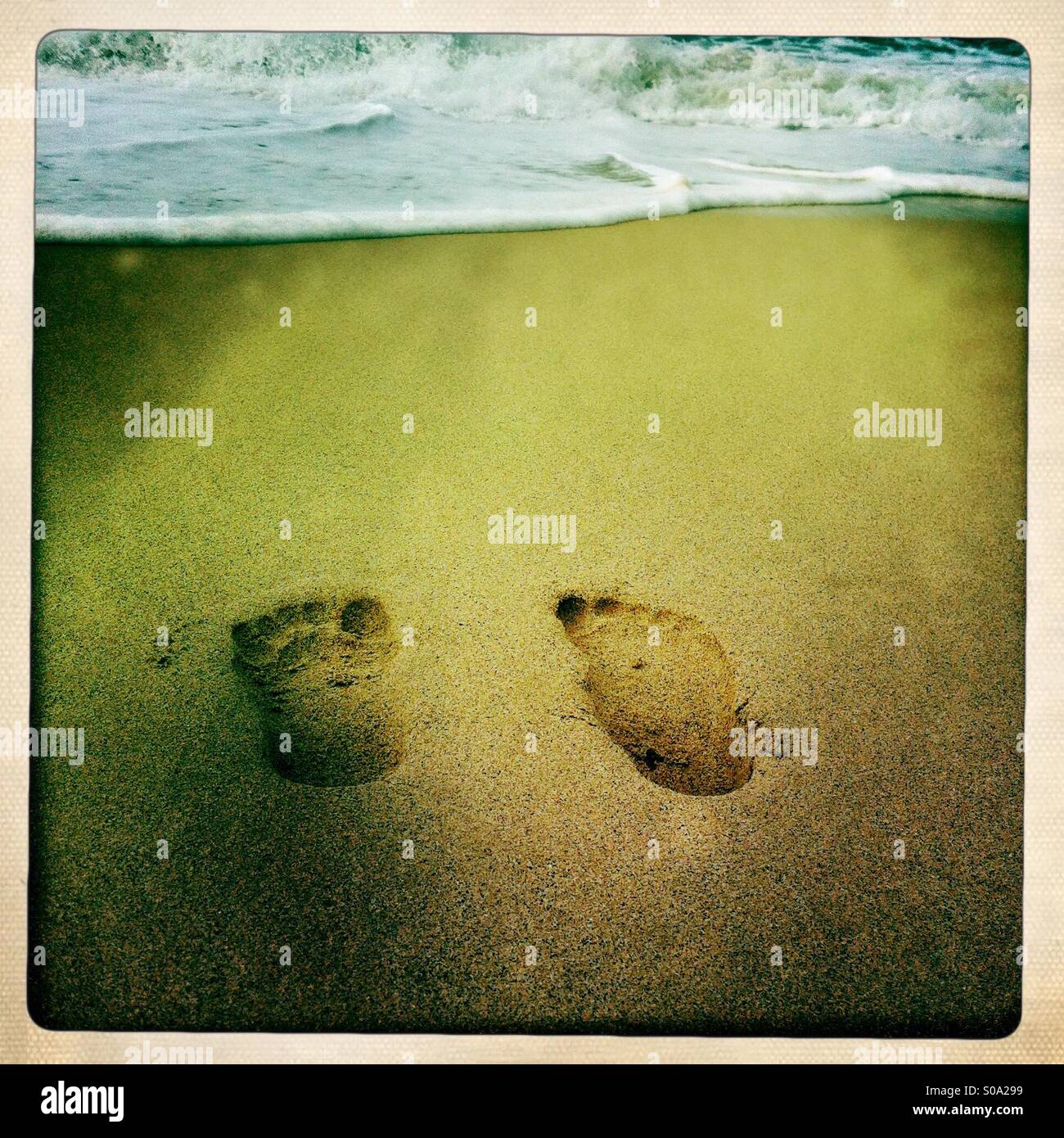 Single set of footprints in the sand on a beach in Ireland Stock Photo