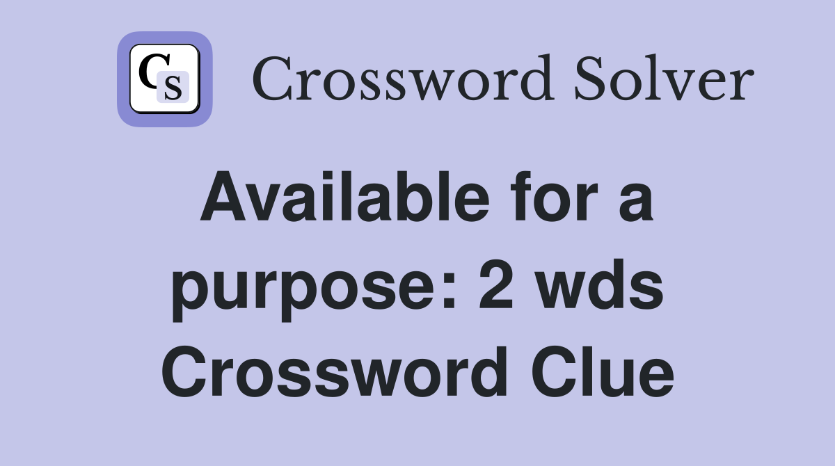 Available for a purpose: 2 wds Crossword Clue Answers Crossword Solver